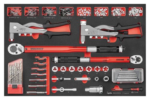 TengTools 219-delars verktygssats för allmänt servicearbete är utvecklad för professionella användare som behöver en omfattande samling handverktyg och tillbehör för olika tillämpningar. Satsen innehåller momentnycklar, nit- och blindnitmuttertång, minispärrhandtag, förlängare, gängverktyg, borrar och skruvutdragare. Dessa verktyg täcker ett brett spektrum av arbetsuppgifter, från gängning och nitarbeten till momentjusteringar, och säkerställer att användare inom bilindustrin, tillverkning och underhåll har rätt resurser för att göra jobbet. Verktygen levereras i en verktygsmodul av högdensitet EVA-skum, designade för att passa i TengTools 26-tums lådor eller för att användas som en fristående verktygssats.